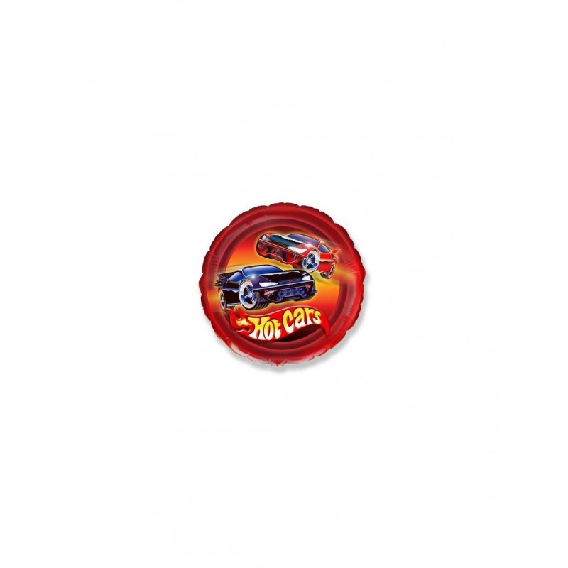 Balão foil em formato redondo da saga "Hot Wheels". Pode ser cheio com ar ou com hélio. Tamanho: 45cm