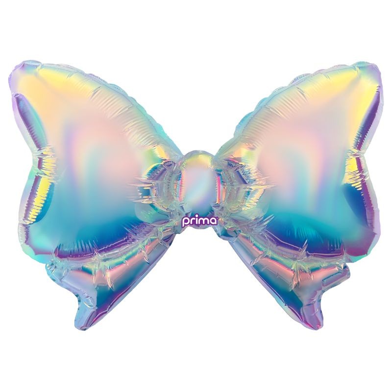 Balão foil no formato de laço iridescente (reflete todas as luzes que lhe incidem). Apenas pode ser cheio com ar. Tamanho: 26" - 61cm