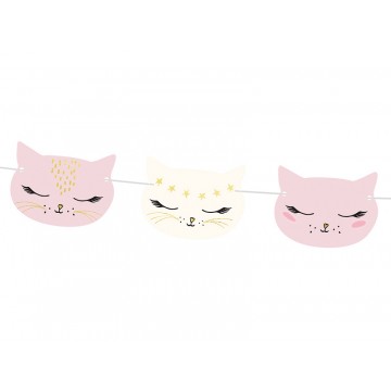 Embalagem com 1 Banner recortado, com vários gatinhos em tons de branco e rosa pastel. Medidas: 8.5 cm x 140 cm