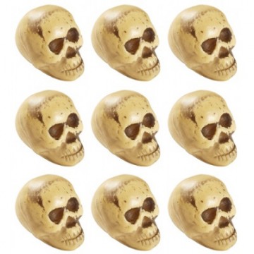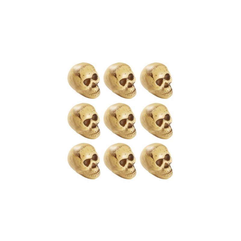 Embalagem com nove caveiras. Aproximadamente com 5 cm