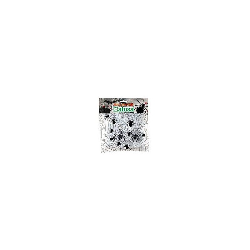 Embalagem com teia de aranha branca com 4 aranhas pretas. Quantidade: 40g
