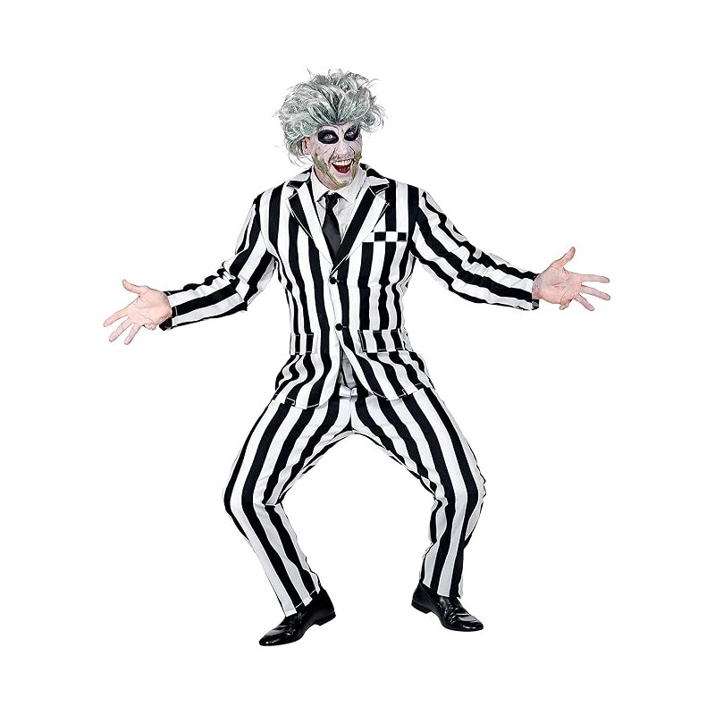 Disfarce " Sleazy Ghost" para Adulto, alusivo ao Filme "Beetlejuice", Inclui: Casaco, calça e Gravata. Tamanho: M