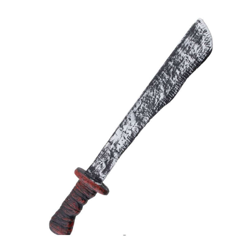 Catana Rústica em plástico Rígido, Pega a Imitar Madeira, Lâmina a Imitar Inox com Riscas Pretas. Tamanho 50cm