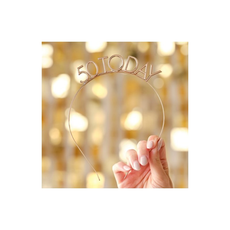 Acessório - bandolete dourada - de metal a dizer "50 TODAY". Tamanho único para adulto.
