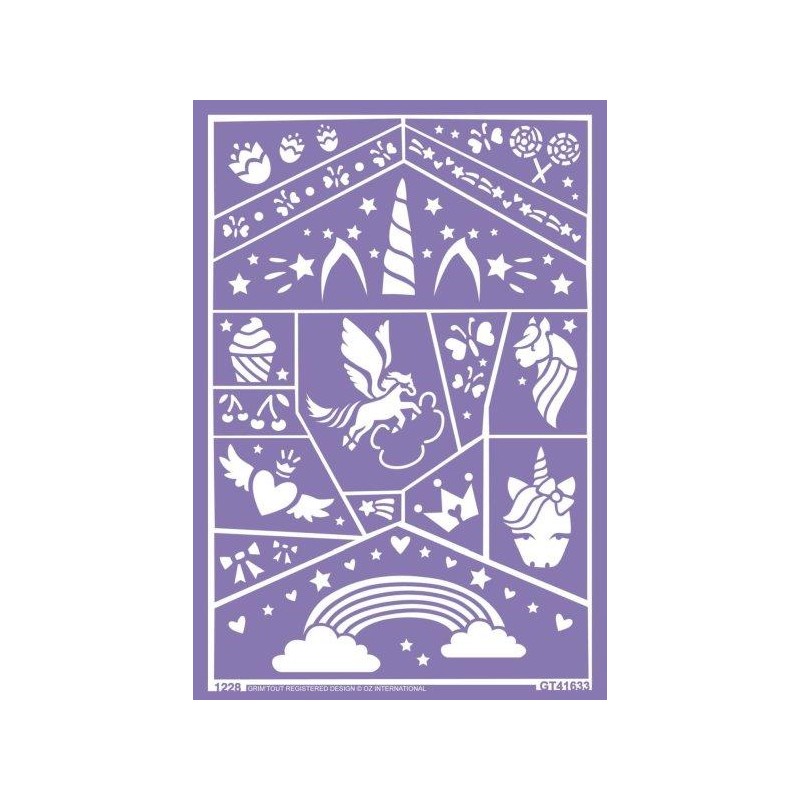 Stencil para maquilhagem com motivos de unicórnios, estrelas, corações, entre outros. Adesivo que não irrita a pele, fácil de aplicar, reutilizável e fácil de lavar!
