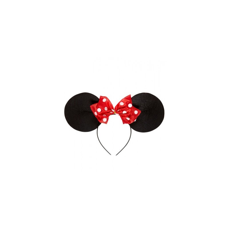 Bandolete orelhas de ratinha com laço vermelho às bolinhas brancas.