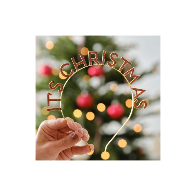Bandolete 'It's Christmas' - Natal, Dourado com Glitter em Vermelho.