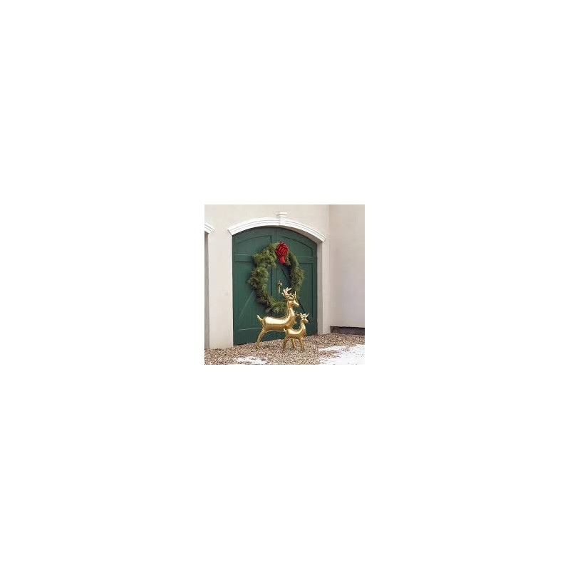Balão Foil "standing" no formato de rena dourada. Apenas pode ser cheio com ar normal - não necessita de hélio para se manter direito. Tamanho: 1.24m x 80cm