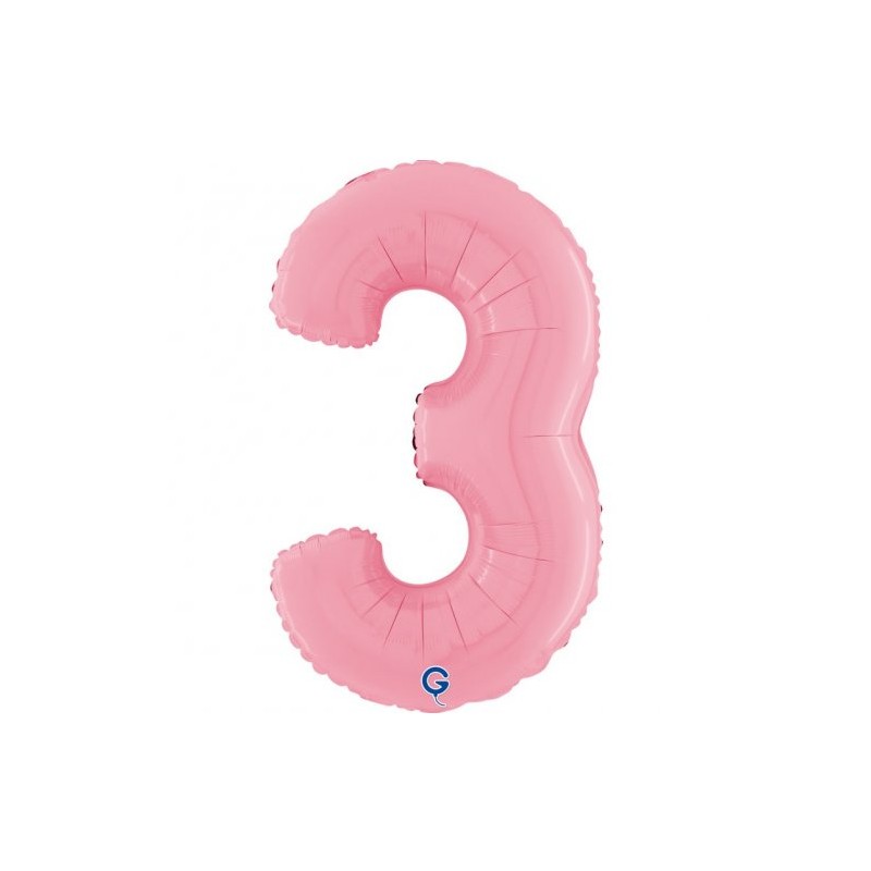Balão foil em formato de número 3 ( três ) na cor rosa pastel. Pode ser cheio com ar ou com hélio. Tamanho: 26" - 66cm
