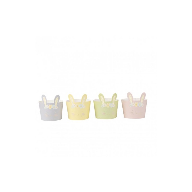 8 mangas de copos em formato de coelho - com as cores amarelo, rosa, lilás e verde. Tamanho: 8cm