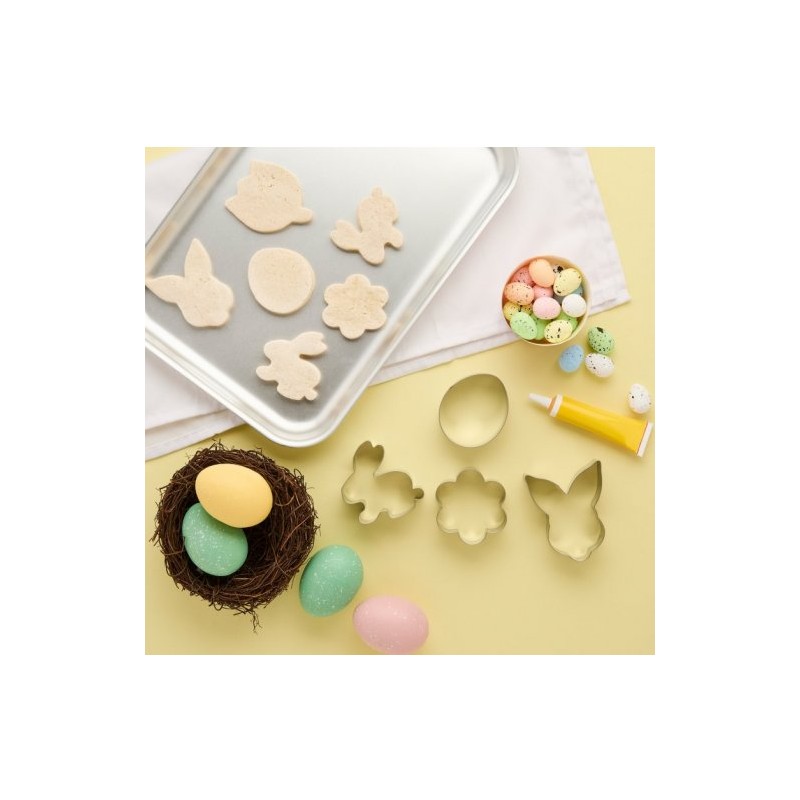4 Cortadores de bolachas para a Páscoa com o formato de ovo,flor e coelhos.