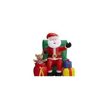 Insuflável Decorativo com o Pai Natal sentado na sua poltrona rodeado de presentes. Ele movimenta a cabela de um lado para o outro, acompanhado com uma balada natalícia e de luz. Ideal para decorar um espaço exterior ou interior.