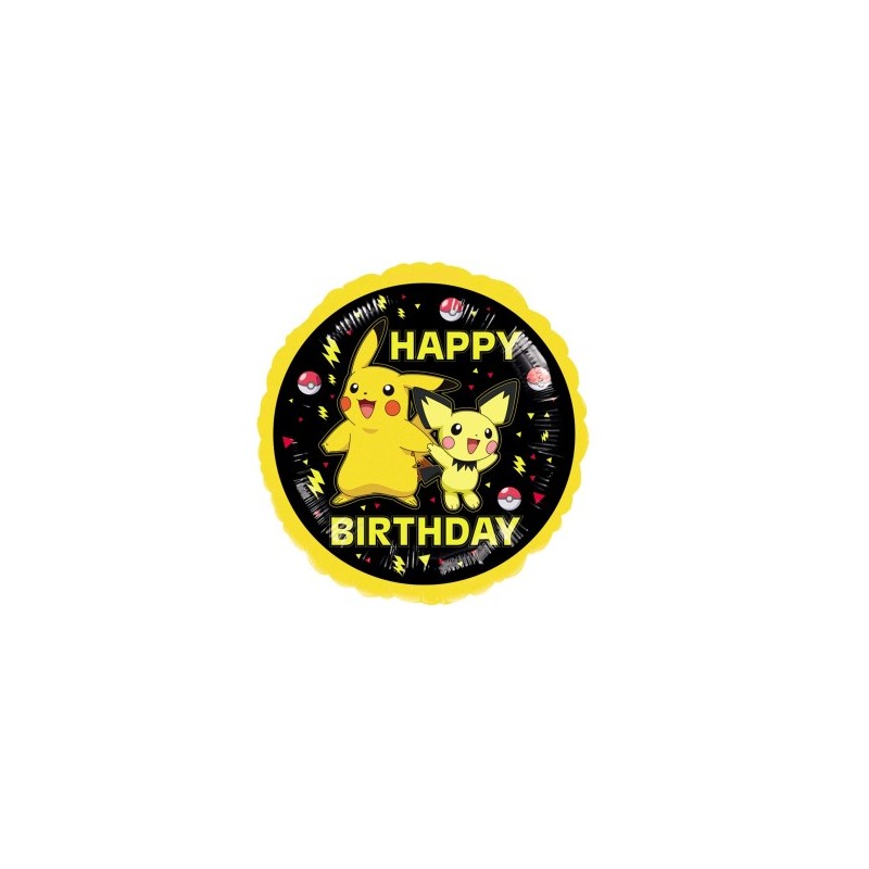 17" Balão foil redondo do tema Pokémon. O balão é decorado com o Pikachu e com o Pichu. Tem a expressão "Happy Birthday". É possível encher com hélio ou com ar. Aproximadamente 43cm