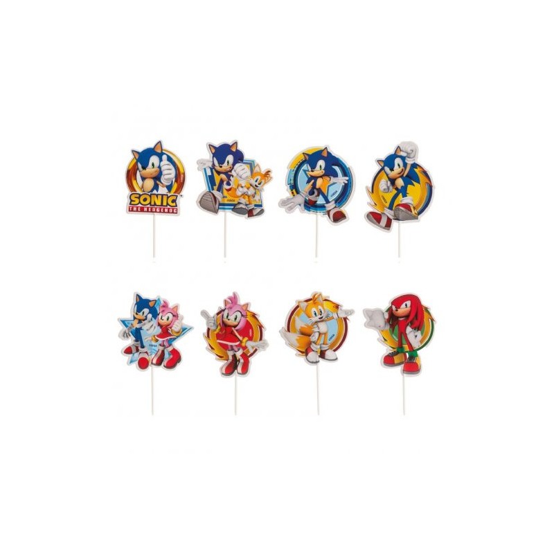 16 Topos decorativos para cupcakes/bolos em papel com personagens do Sonic.