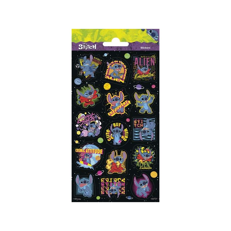 Embalagem com diversos autocolantes do tema "Stitch"