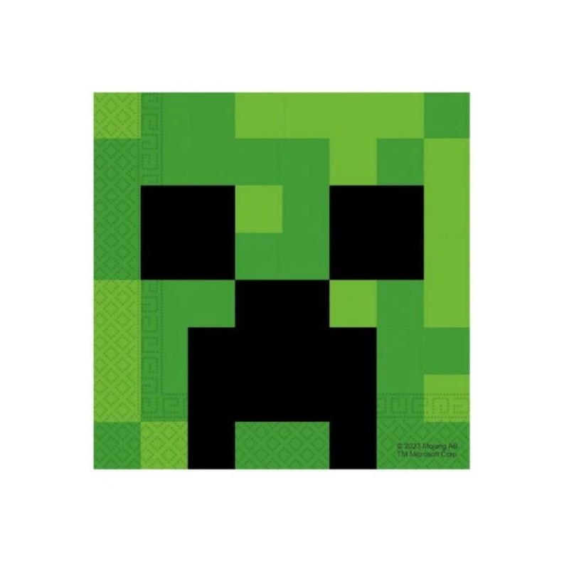 Embalagem com 20 guardanapos de papel, com fundo quadriculado em vários tons de verde e o rosto em pixeis a preto. Tamanho: 23cm x 23cm