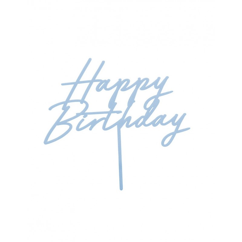 Topo em Acrílico p/ Bolo "Happy Birthday" Azul