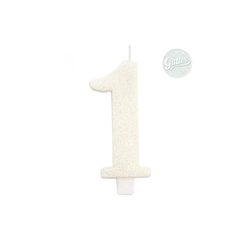Vela N.º 1 Branca c/ Glitter