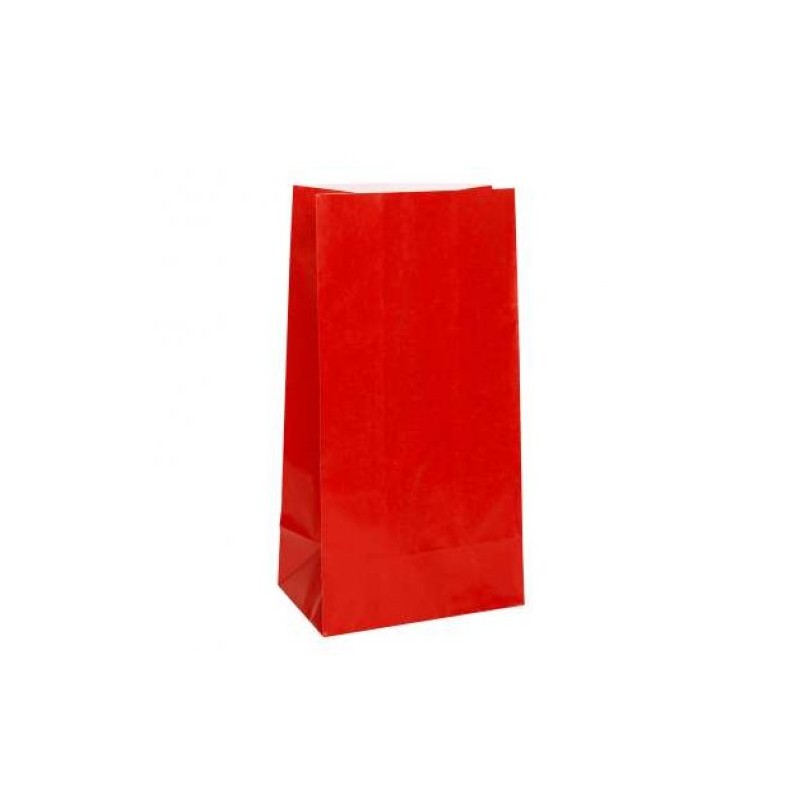 Embalagem com 12 sacos de papel vermelho ruby.